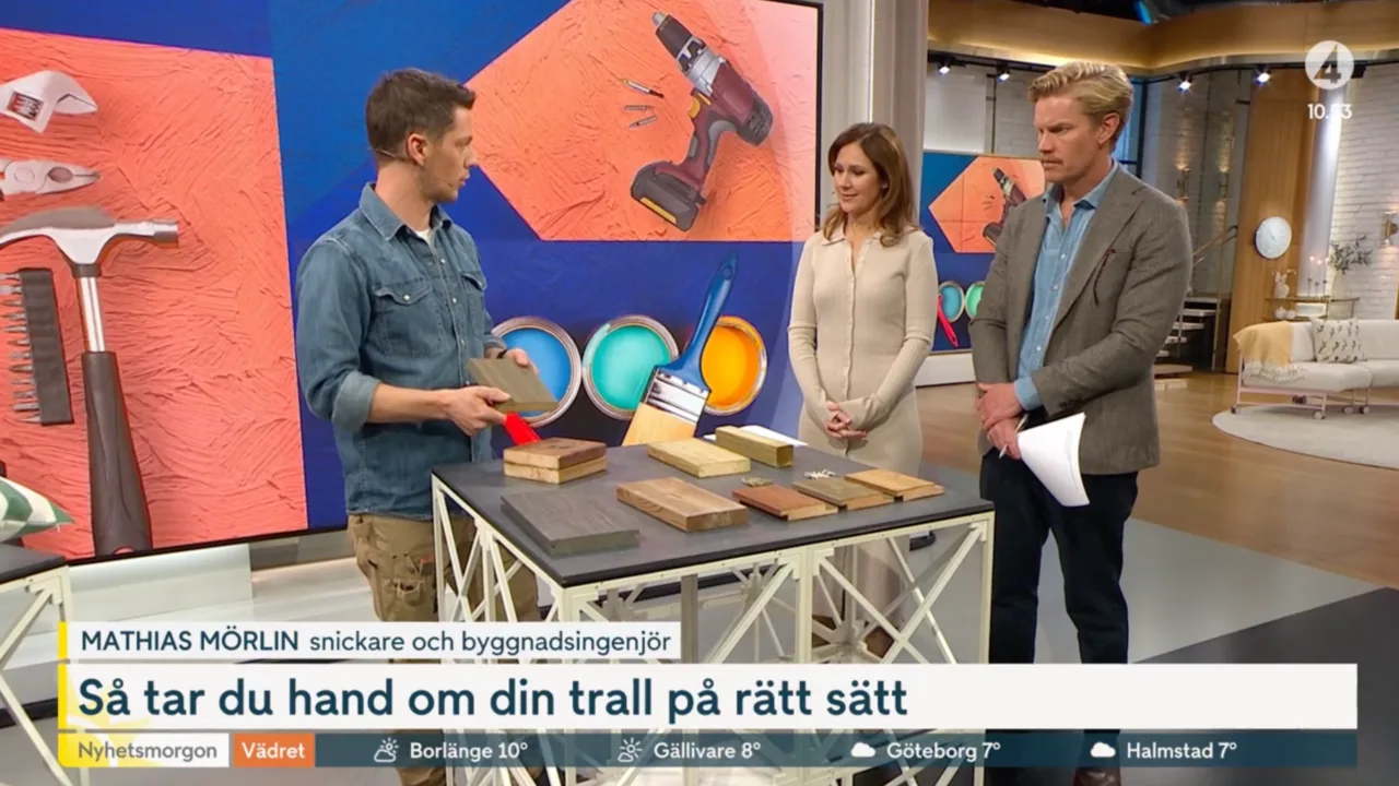 - Linax i Nyhetsmorgon!Såg du dagens sändning av Nyhetsmorgon? Då kanske du såg snickaren Mathias Mörlin, känd från duon Snickarn & Inredarn, medverka och berätta om sin favorit – Linax. Han berättade även att träet är både tryckimpregnerat och linoljebehandlat, vilket ger ett extra starkt skydd mot väder, fukt och röta – samtidigt som träets naturliga känsla och utseende bevaras.
