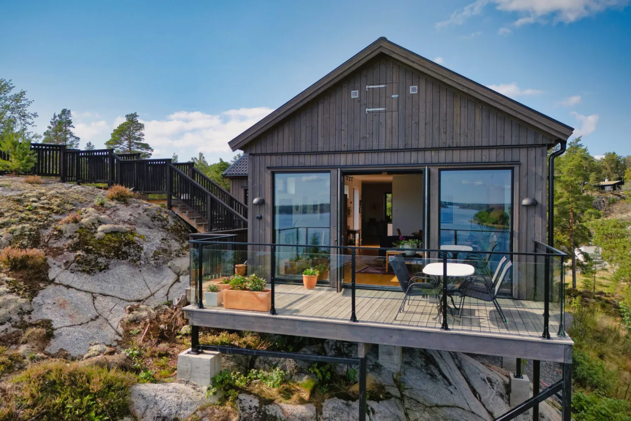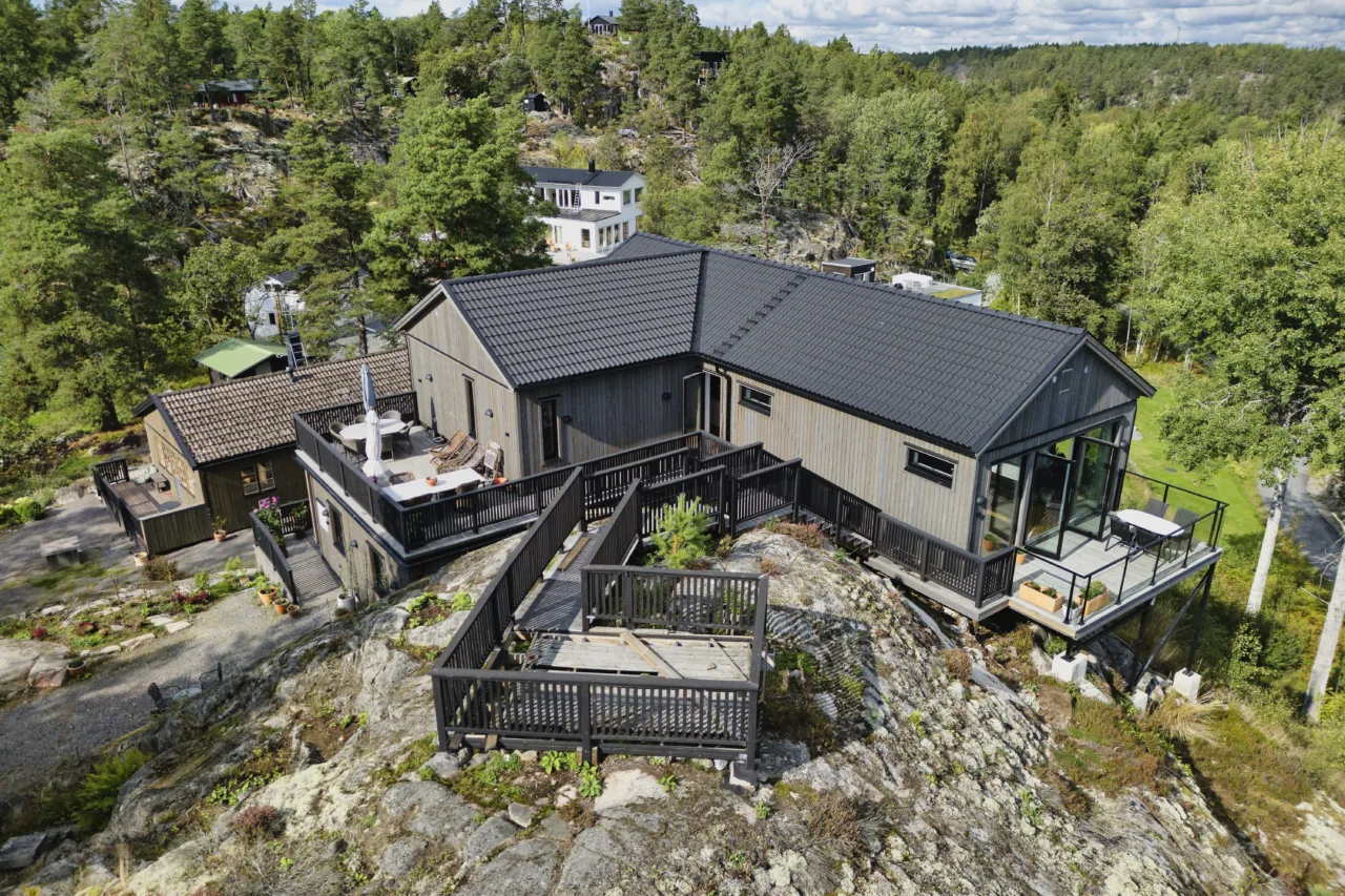 Högt uppe på berget i Ättarö, med en vidsträckt utsikt över hav och skärgård, ligger ett hem som låter platsen sätta tonen. Här har arkitekturen fått anpassa sig efter naturens villkor – inte tvärtom.